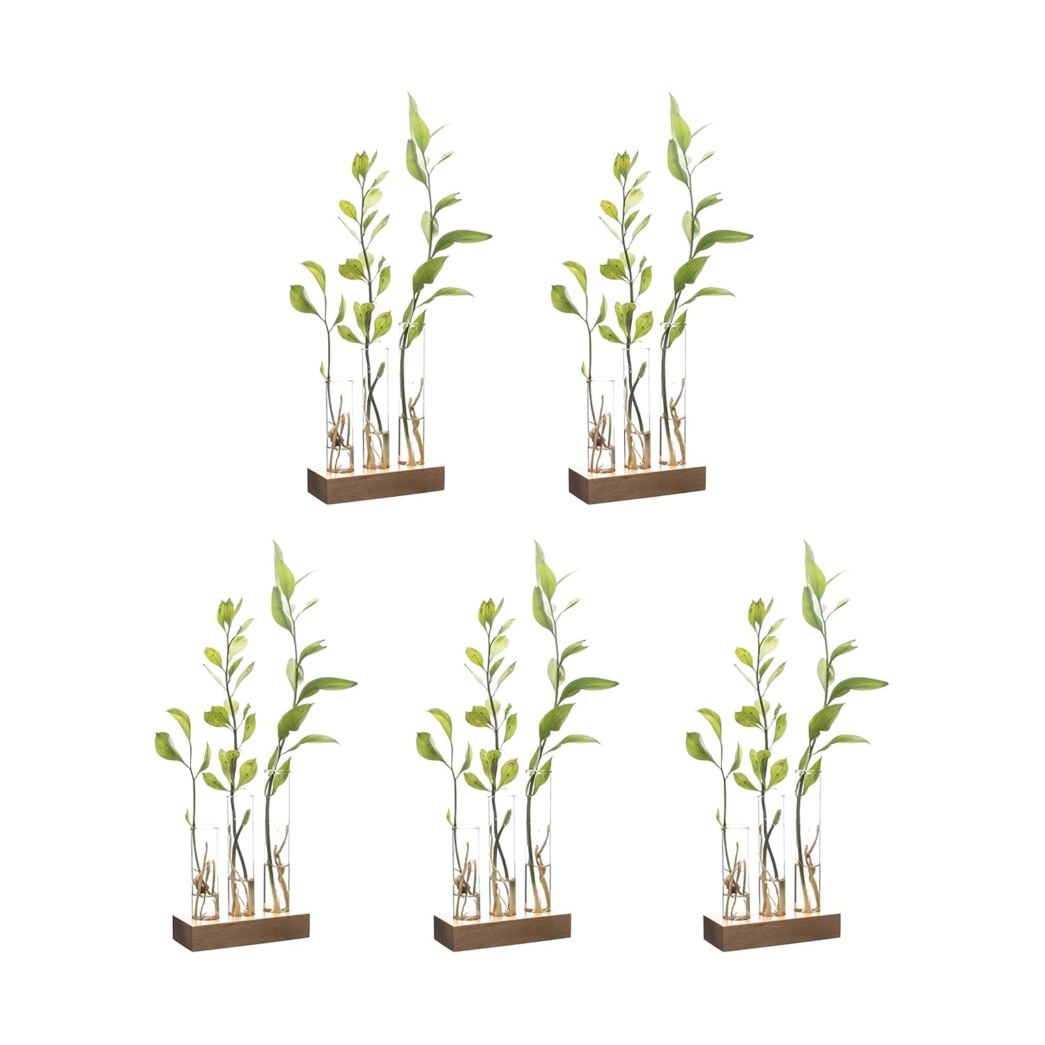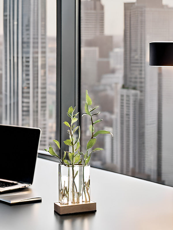 Labzio Home - Flower Vase with 3 Hand Blown Borosilicate glass test tubes in a Small Rectangle Wooden Block Stand