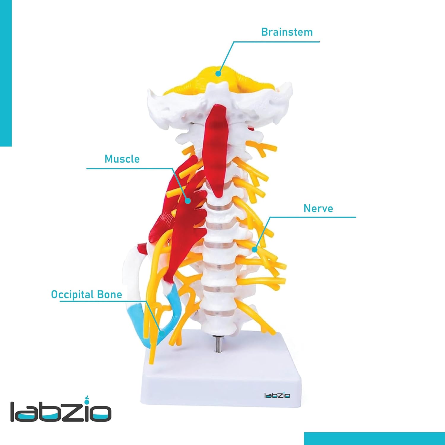 - This Labzio anatomical model features the entire cervical vertebrae with muscles and nerves with occipital bone and a removable soft replica of cerebellum