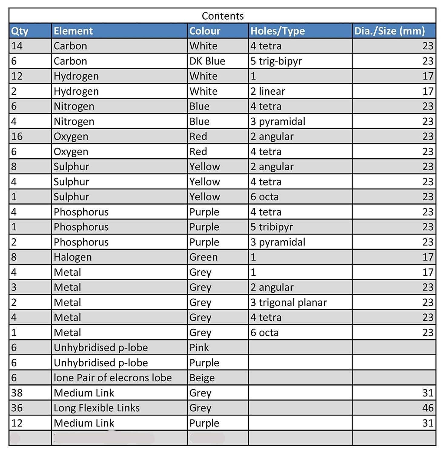 - All atoms are colour coded to universal standards making identification easy to use. Standard size, interchangeable with other branded sets