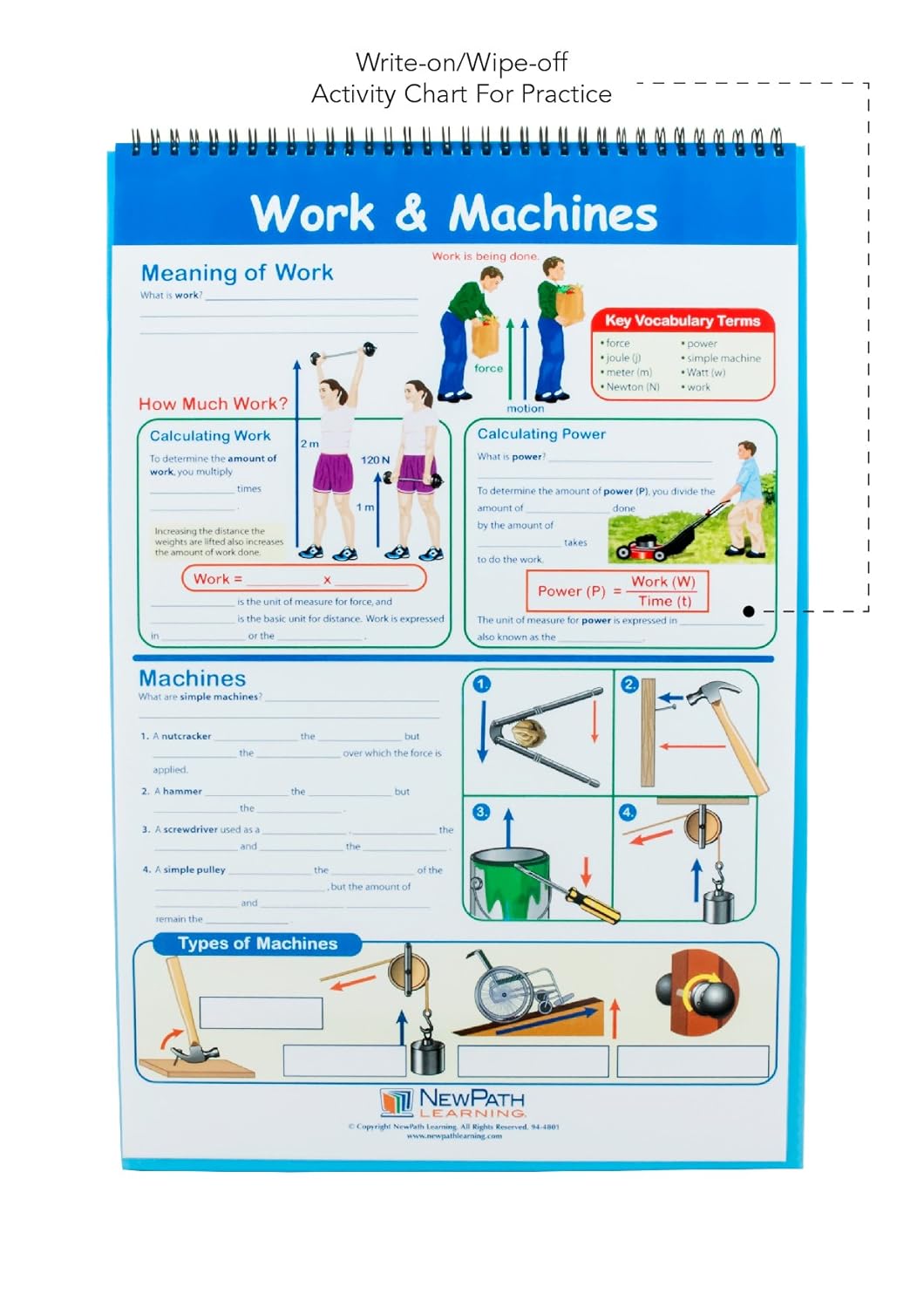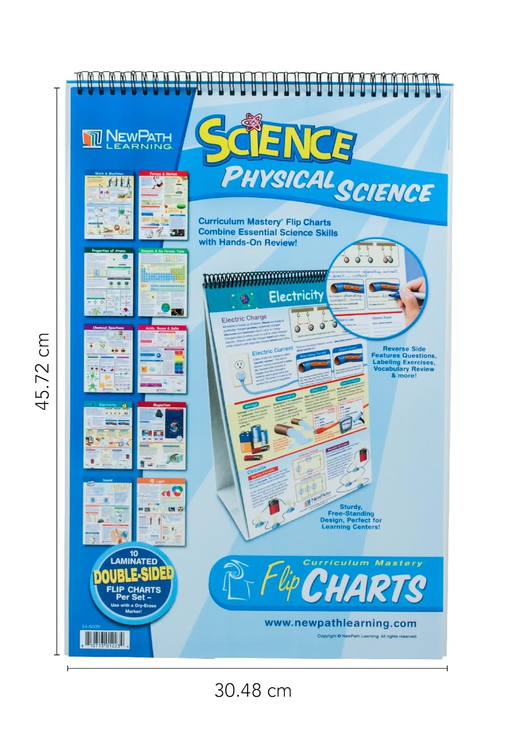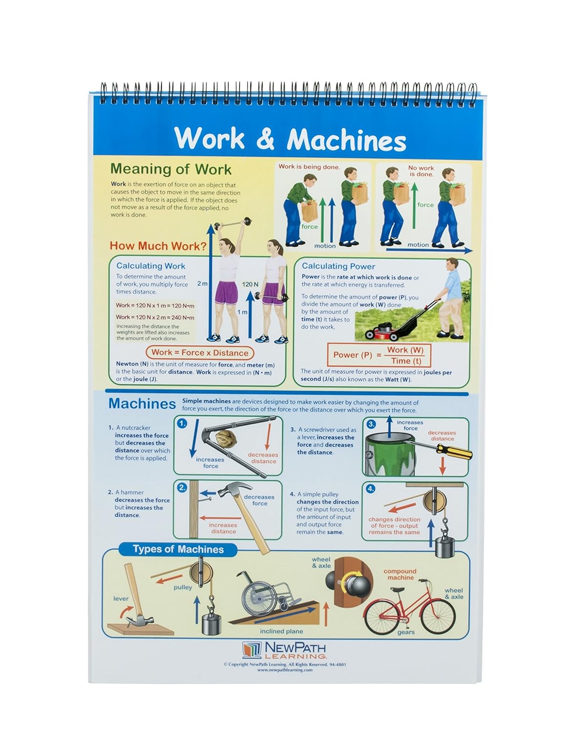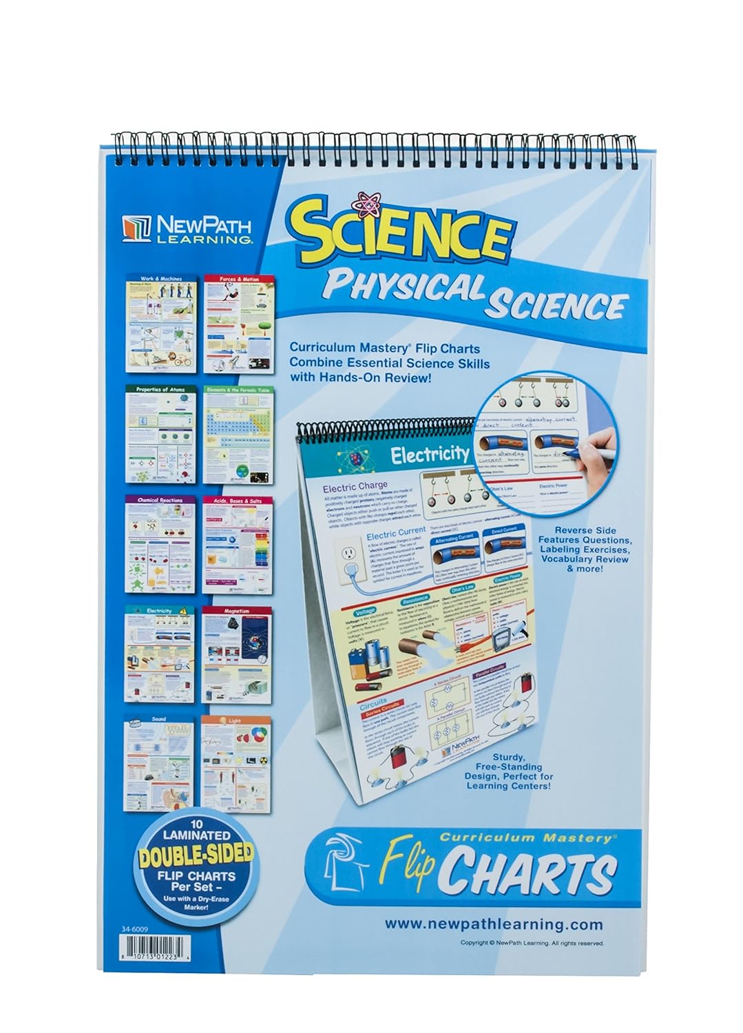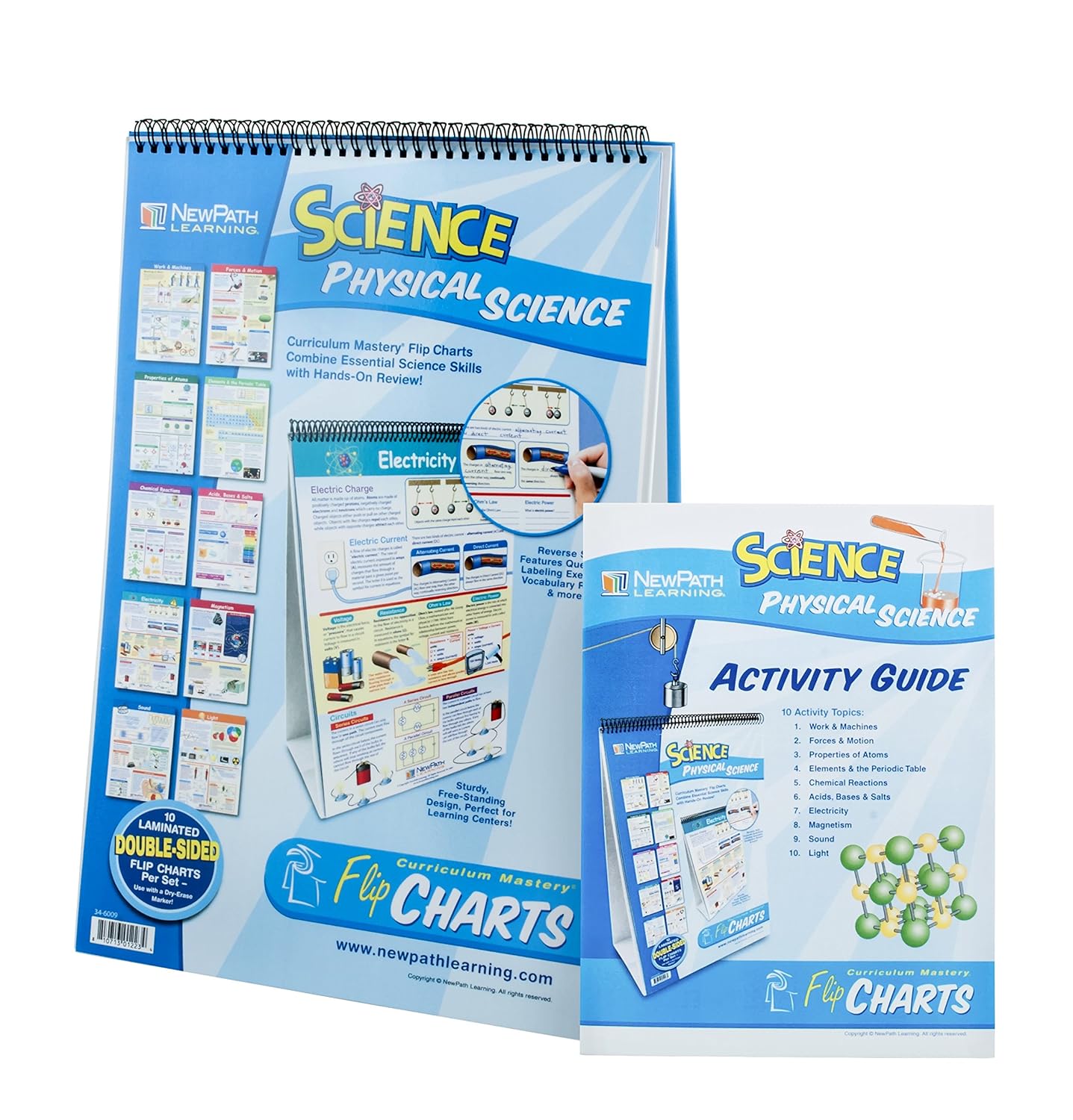 - Topics include: Work & Machines, Forces & Motion, Properties of Atoms, Elements & Periodic Table, Chemical Reactions, Acids, Bases & Salts, Electricity, Magnetism, Sound, Light