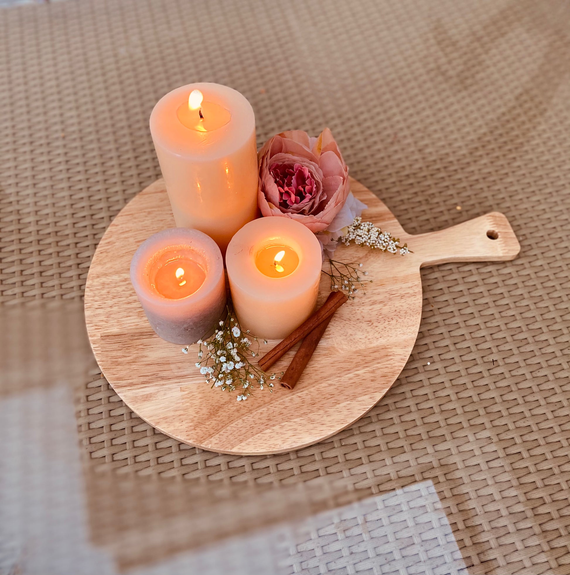 - MULTIPURPOSE SERVING platter is made of wood and polished for easy maintenance. The thickness and size is suitable for serving pizza about 10 inch to12 inches . The paddle handle makes it convenient to hold.