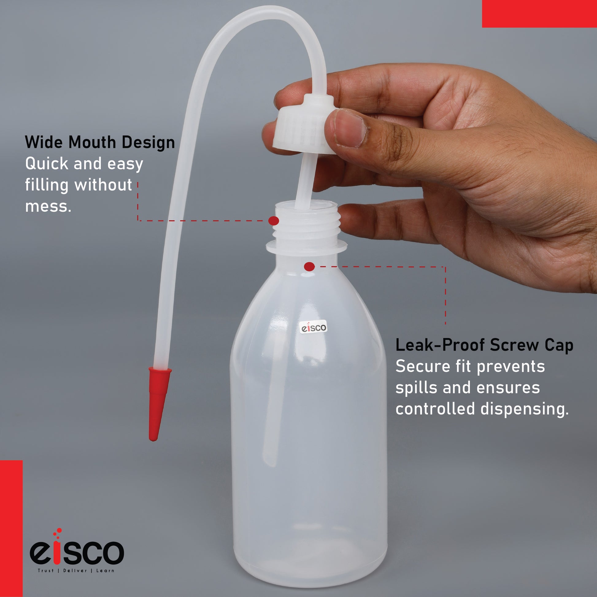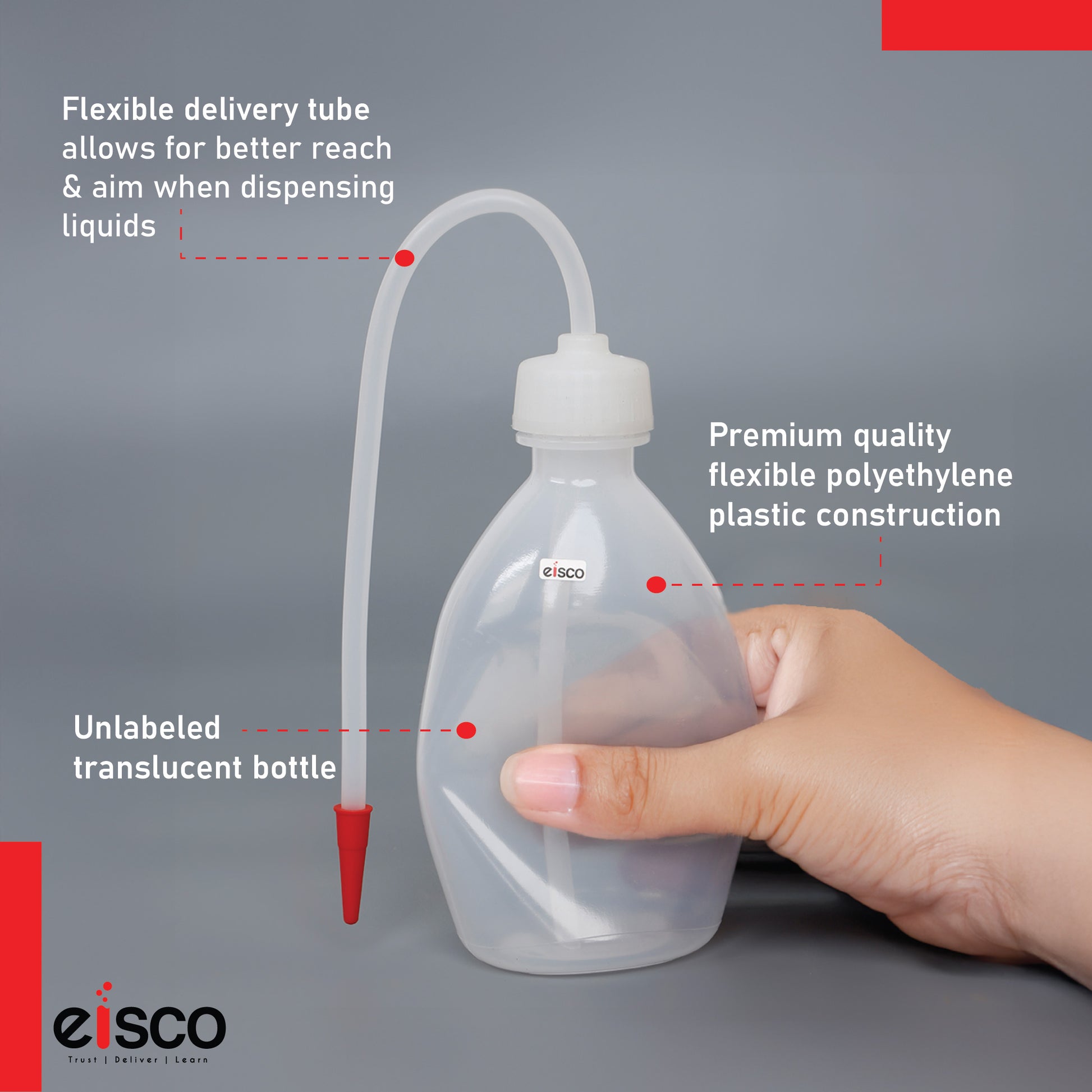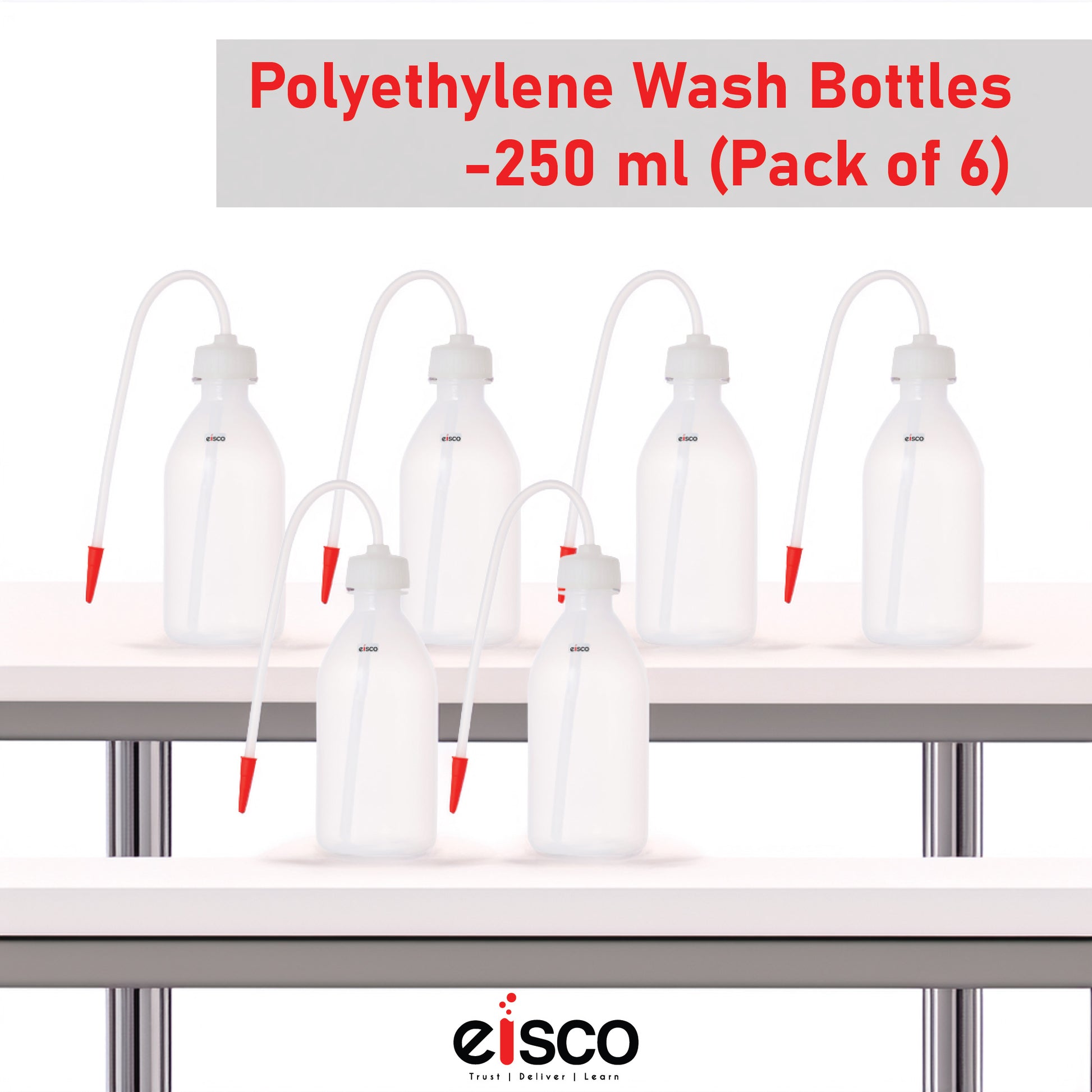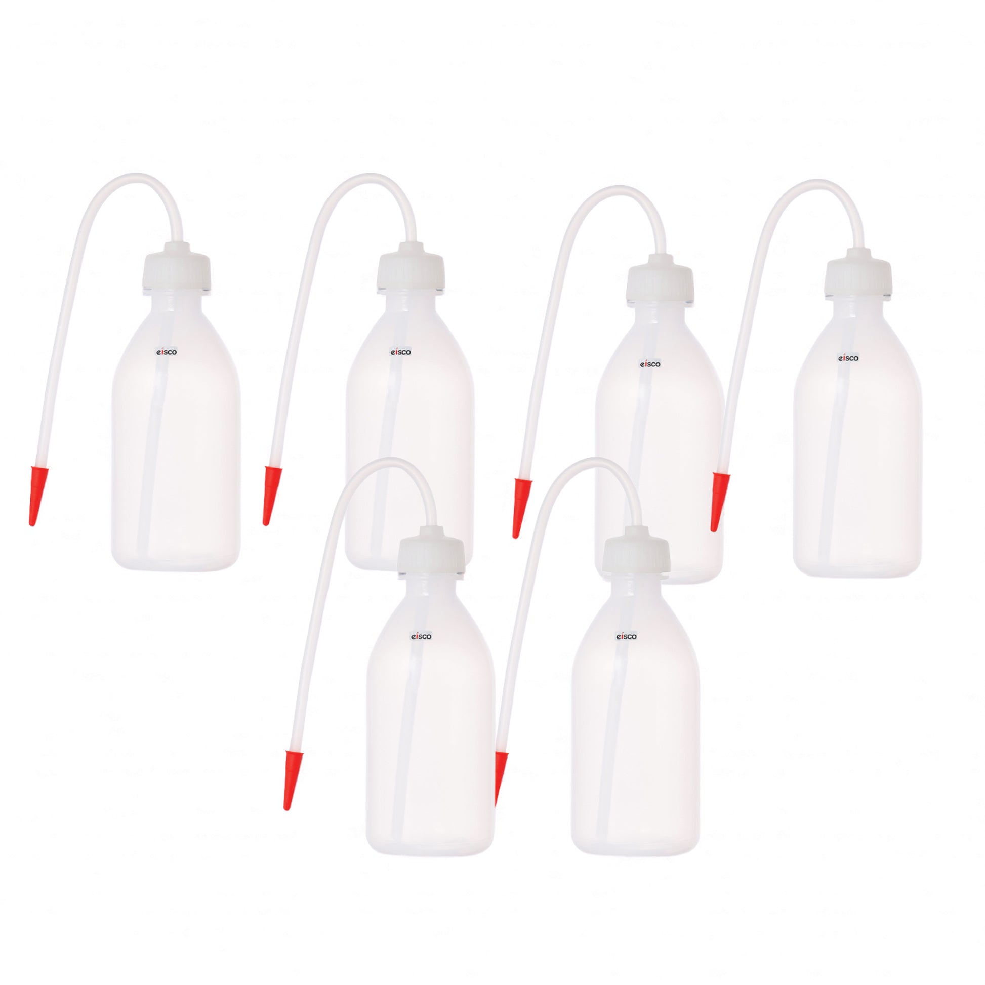 Eisco ( Pack of 6 x 250ml Polyethylene Wash Bottles – Unbreakable, Leakproof Lab Bottles with Flexible Delivery Tube | Chemical Resistant | Easy Squeeze Bottles for Laboratory Use