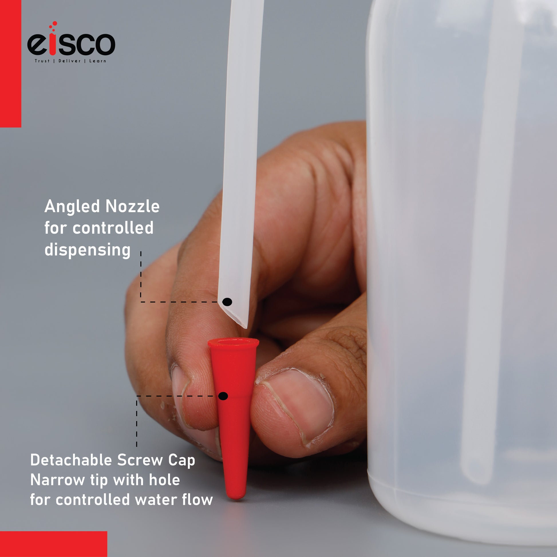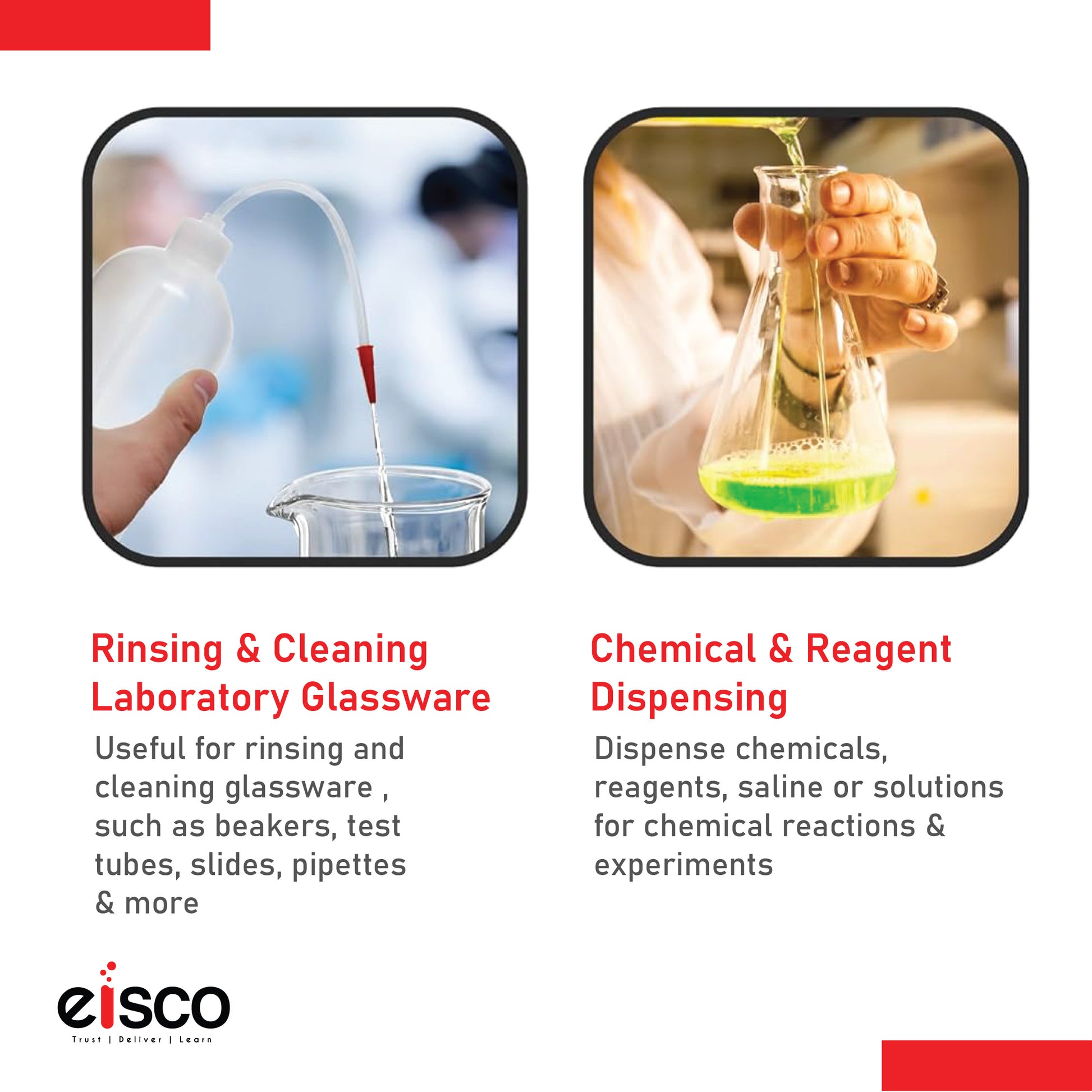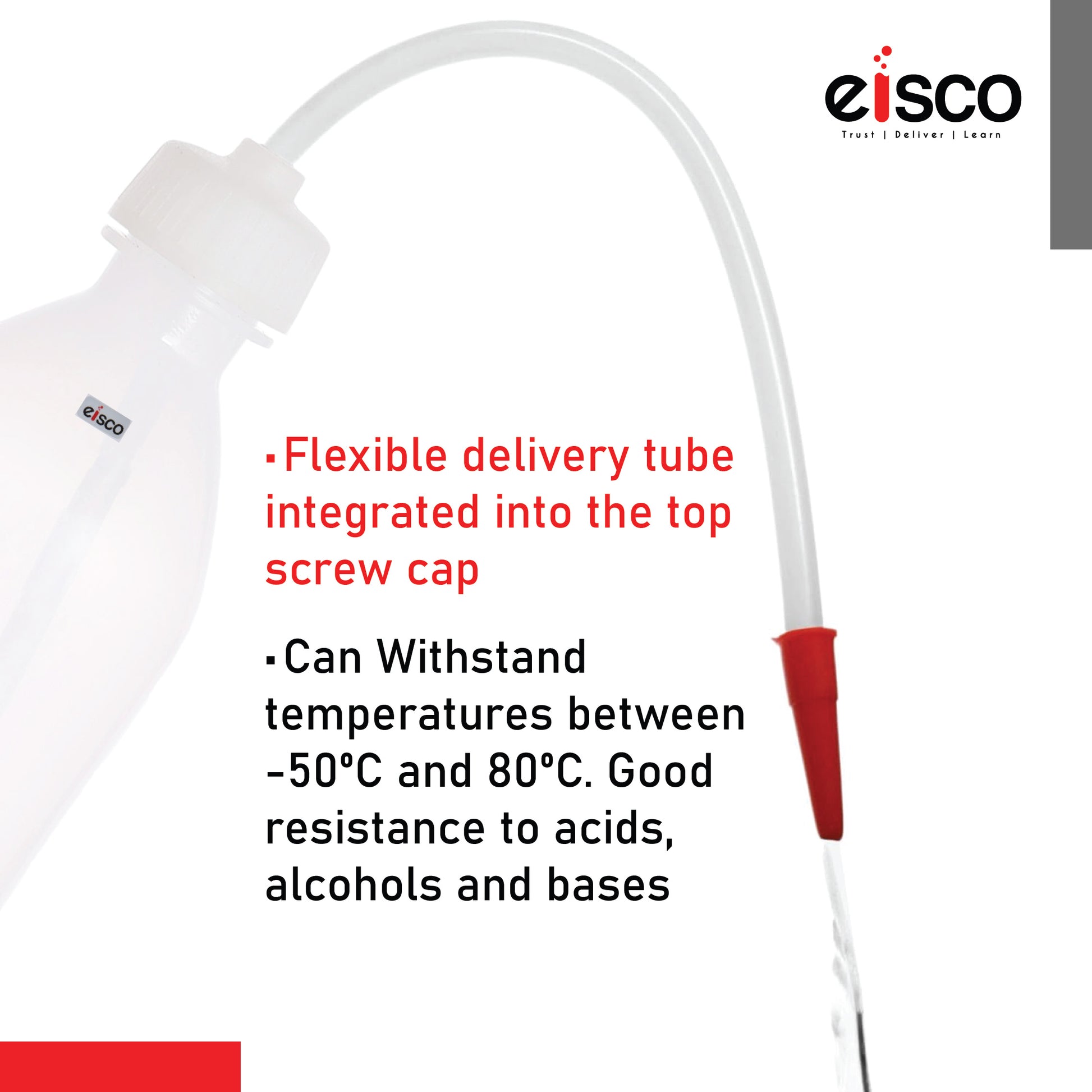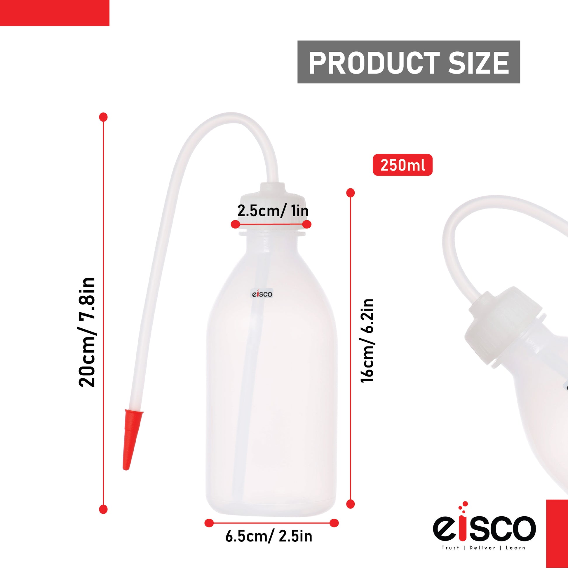 Eisco ( Pack of 6 x 250ml Polyethylene Wash Bottles – Unbreakable, Leakproof Lab Bottles with Flexible Delivery Tube | Chemical Resistant | Easy Squeeze Bottles for Laboratory Use