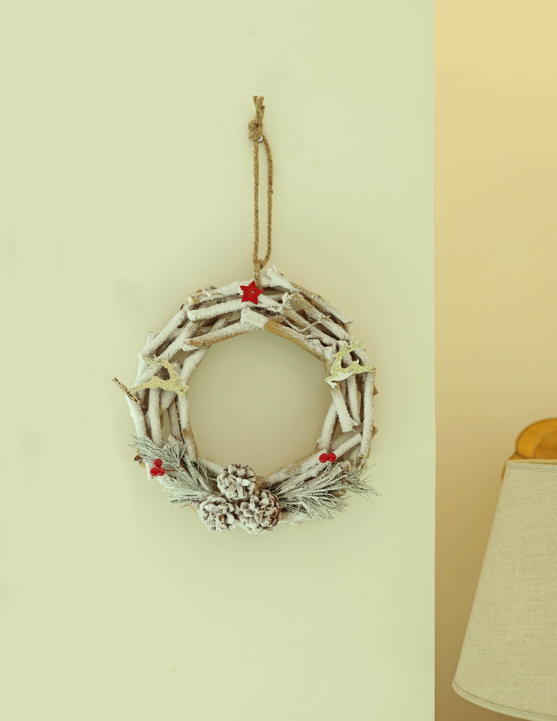 - Rustic winter wreath with snow-dusted pinecones, berries, and greenery, perfect for front doors, walls, or Christmas tree displays.